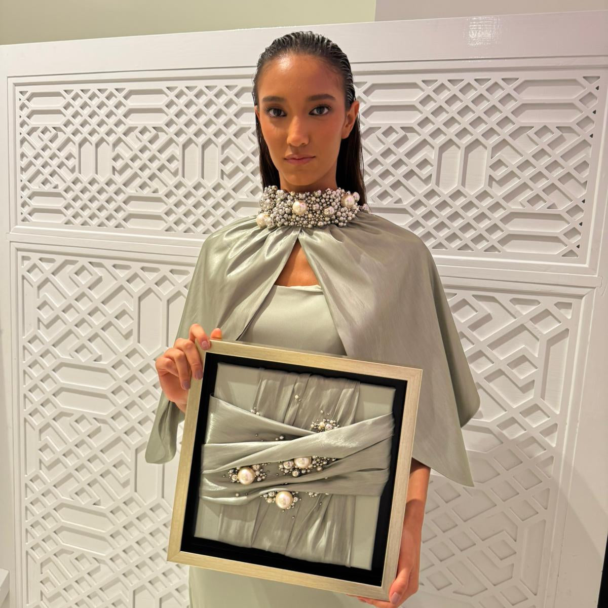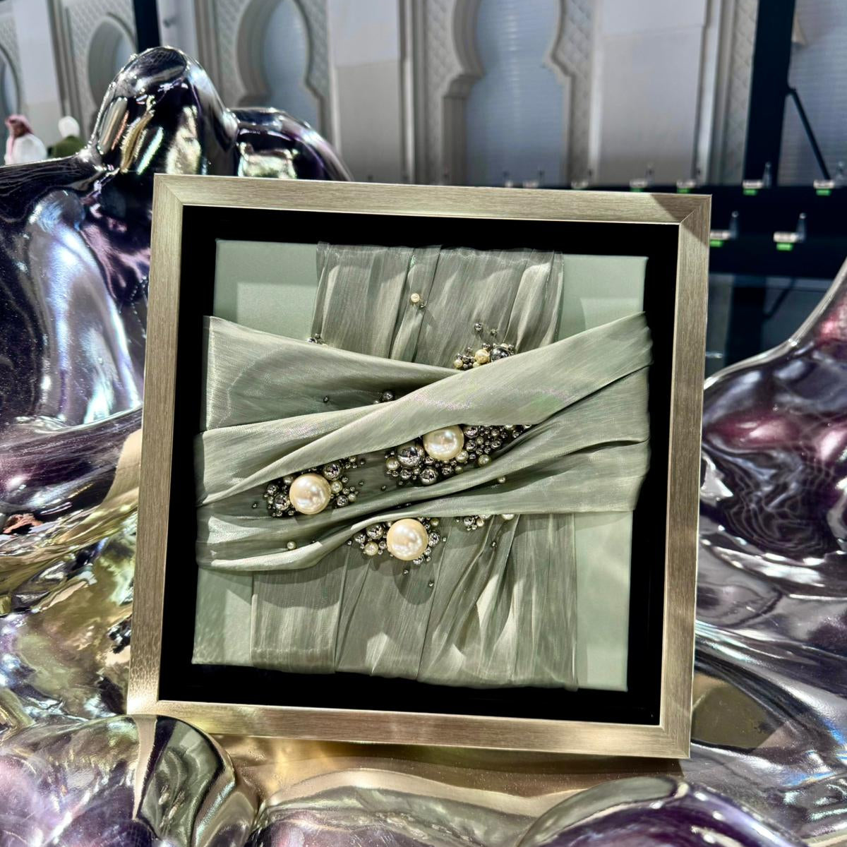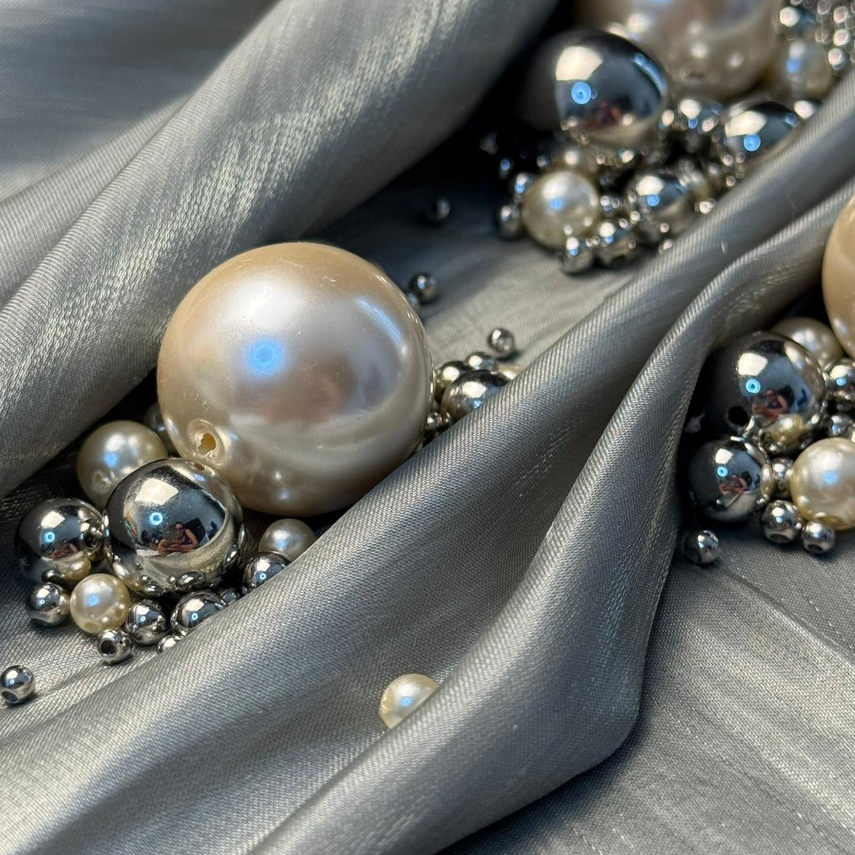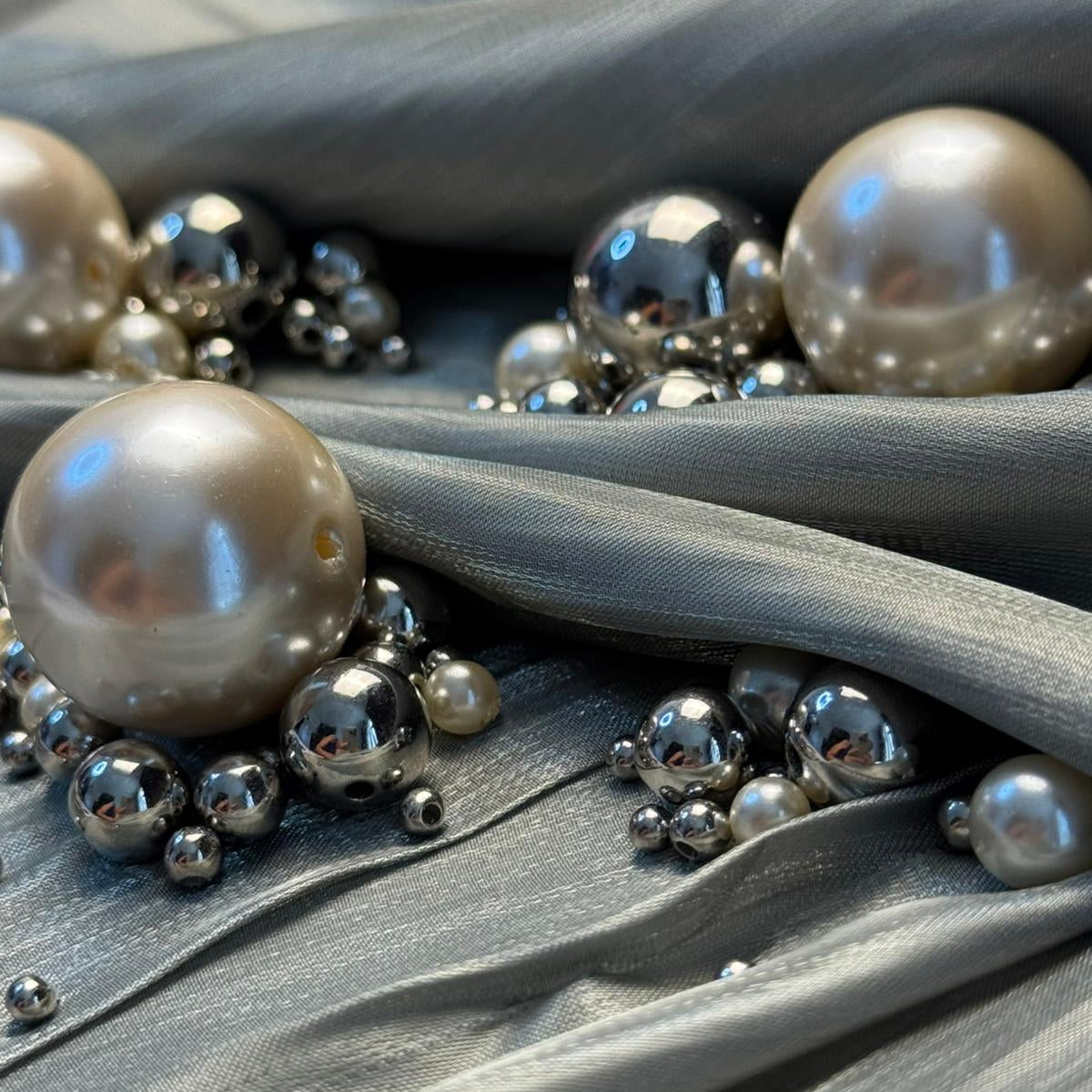 Sculpted fabric with beadwork exploring the boundaries between material, form, and design. The work reinterprets textile surfaces through transformation and recontextualization.
